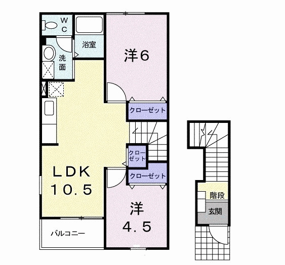 洋室 6.0帖/洋室 4.5帖/LDK 10.5帖 - 向き